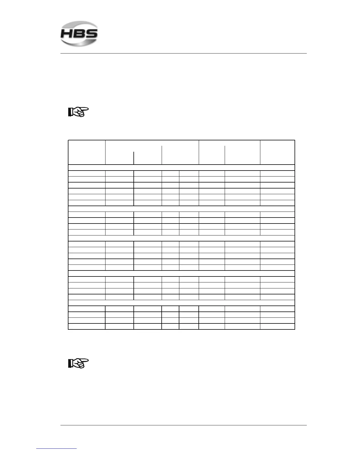 Data given in the following table are only guidelines. They