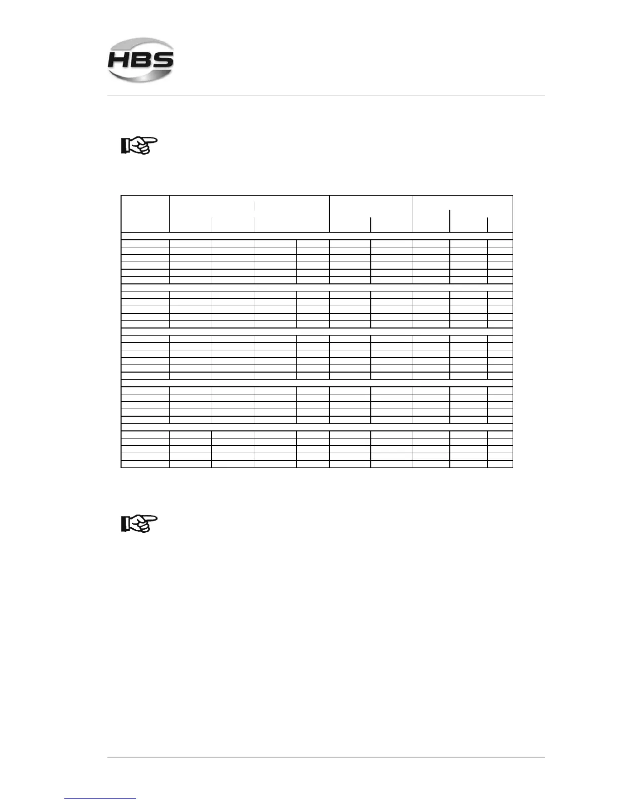 Data given in the following table are only guidelines. They must