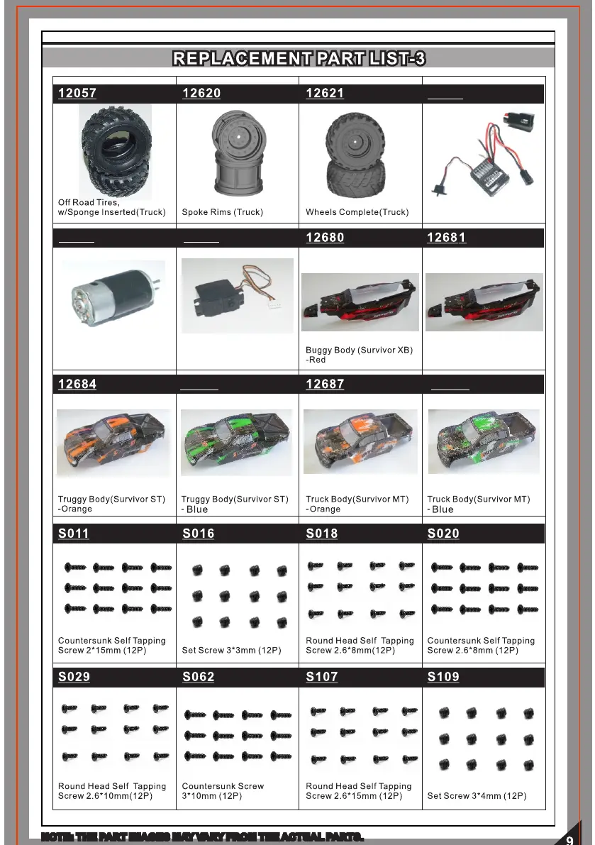 NOTE: THE PART IMAGES MAY VARY FROM THE ACTUAL PARTS.