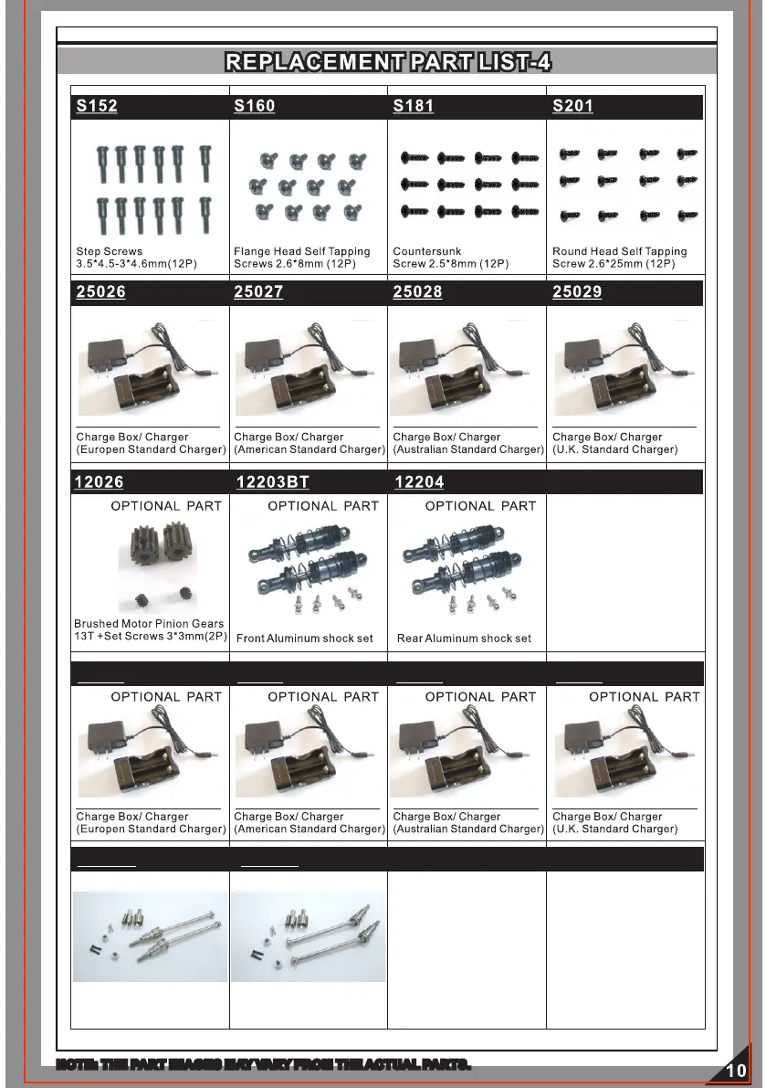 NOTE: THE PART IMAGES MAY VARY FROM THE ACTUAL PARTS.