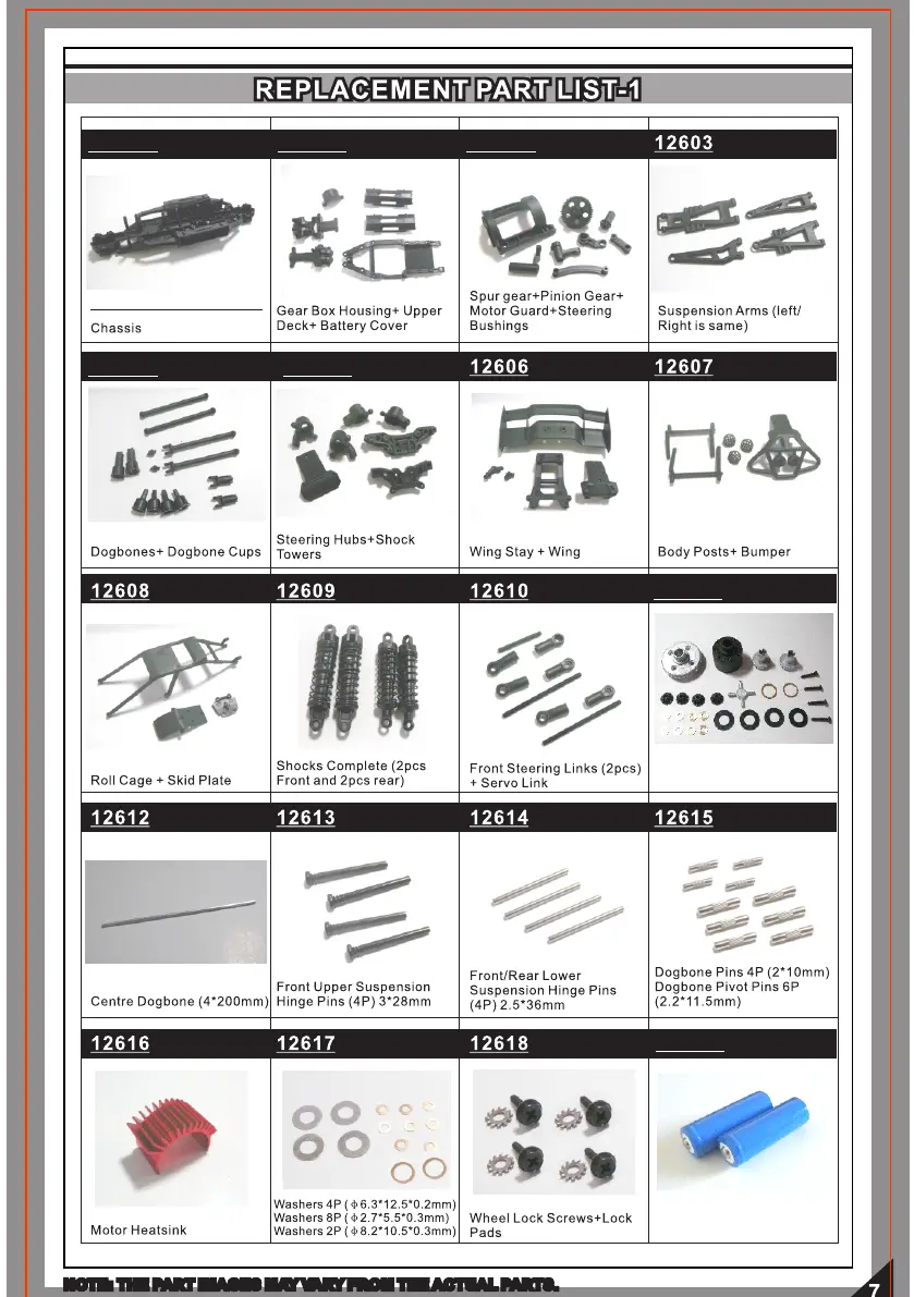 NOTE: THE PART IMAGES MAY VARY FROM THE ACTUAL PARTS.