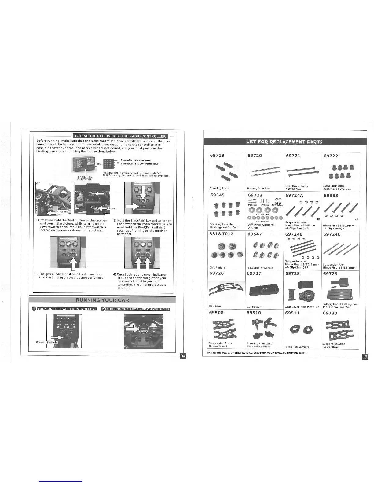 HBX Dune Racer - Radio System Setup and Operation; Receiver Binding Procedure; Car Startup Sequence
