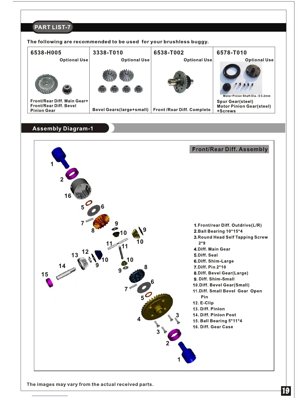 HBX Rocket 6588 - Part List-7; Assembly Diagram 1 - Front;Rear Diff. Assembly