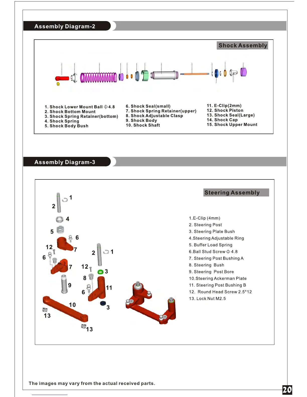 HBX Rocket 6588 - Assembly Diagram 2 - Shock Absorber Assembly; Assembly Diagram 3 - Steering Assembly