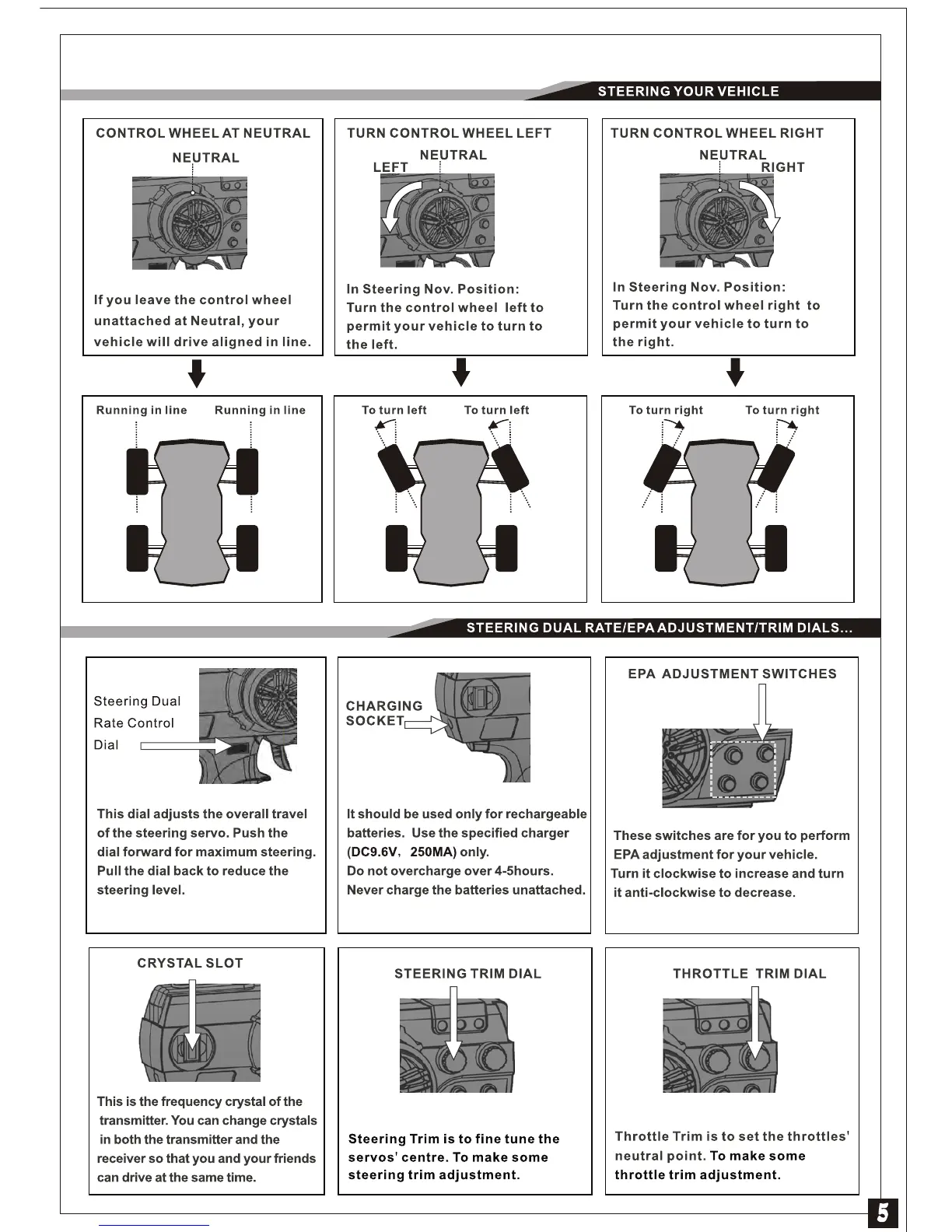 HBX Rocket 6588 - 4. GENERAL USAGE OF YOUR TRANSMITTER; Driving Controls: Trigger and Steering Wheel