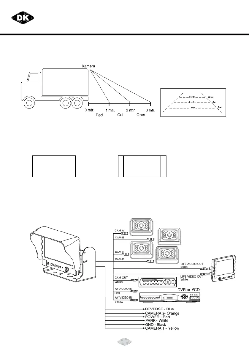 Ved aktivering at triggerkablet til bakkameraet vises billedet altid i 4:3 format for at få det rigtige størrelsesforhold.