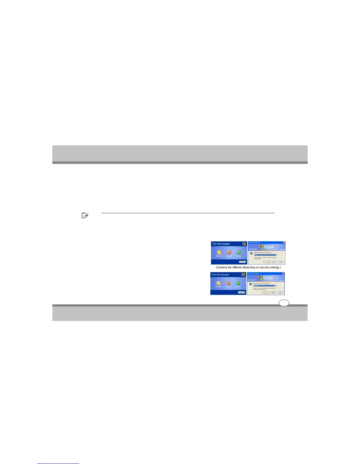 In Windows XP, power OFF the Notebook PC by clicking Windows