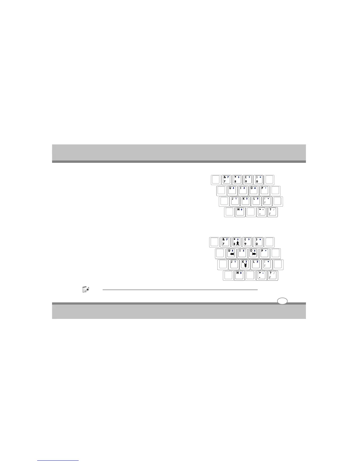 shown. For example (Fn) (8) for up, (Fn) (K) for down, (Fn)(U) for left,