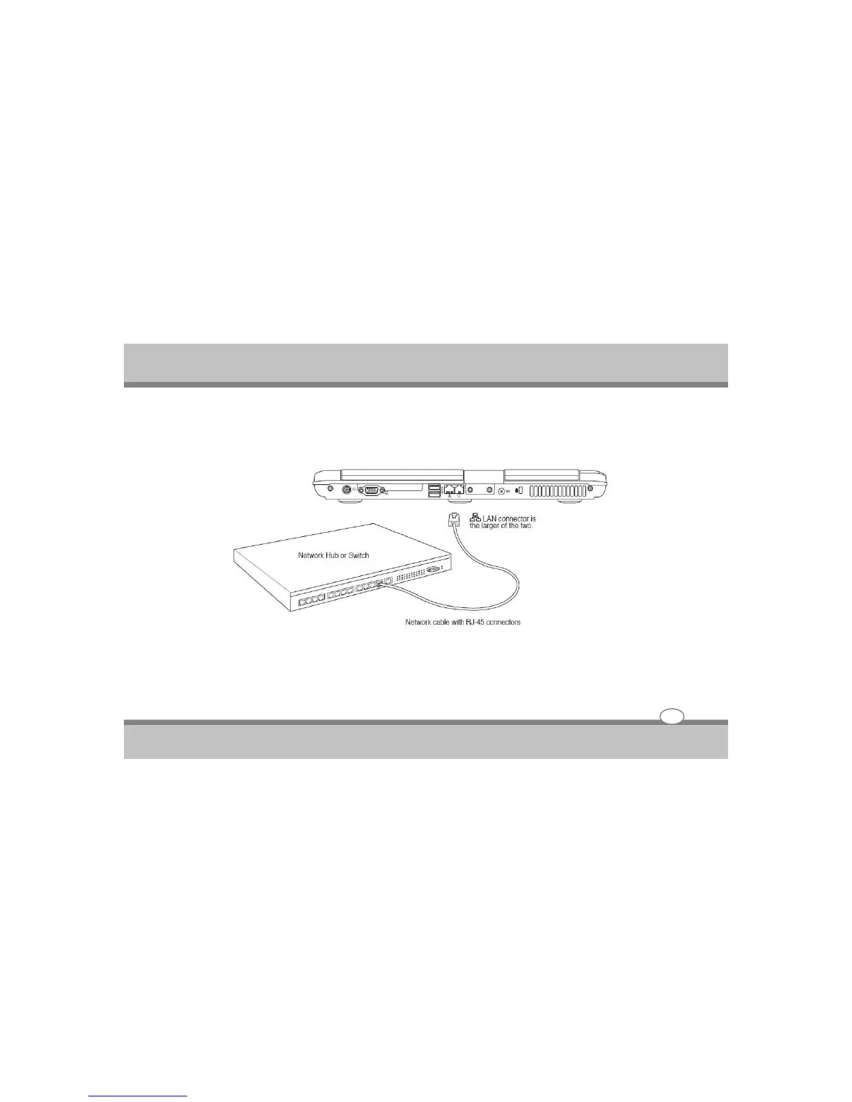 HCL Laptop - Example of the Notebook PC connected to a Network Hub or Switch for use with the built-in Ethernet controller.