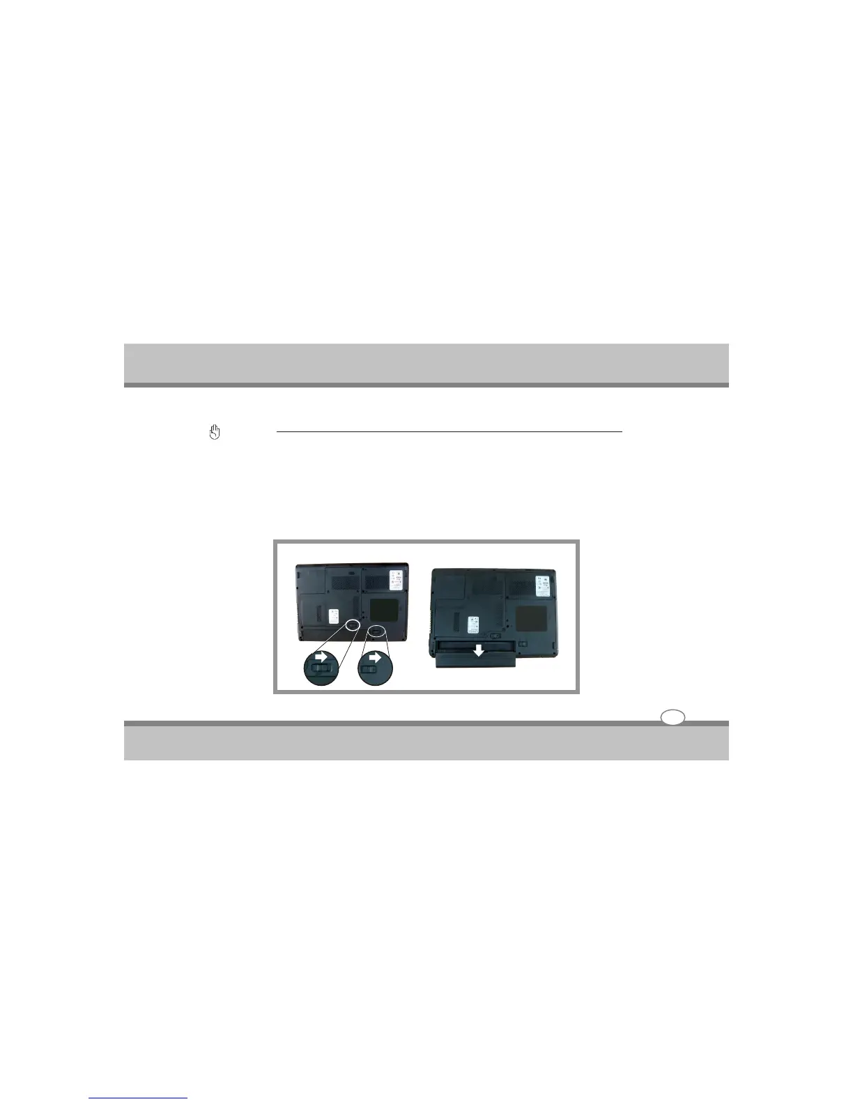 To remove the battery pack, slide the lock latch to the end of right side to unlock the battery lock latch (1),