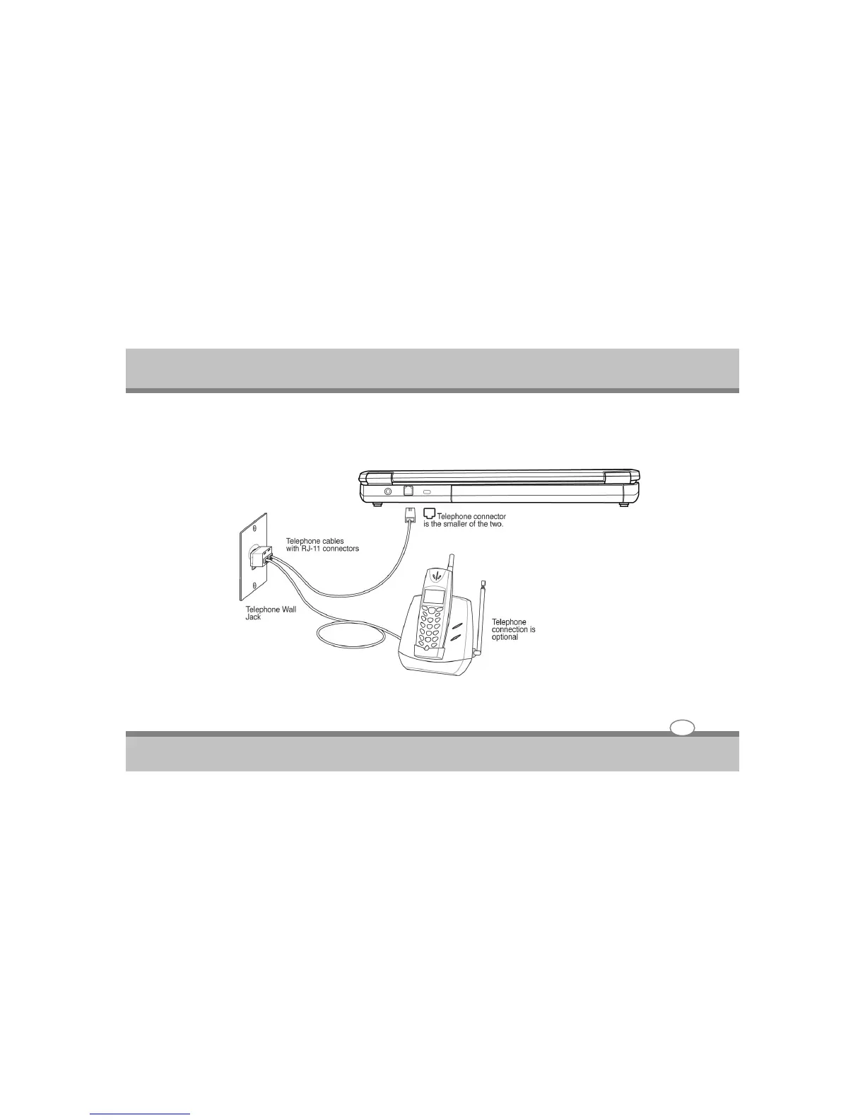 Example of the Notebook PC connected to a telephone jack for use with the built-in modem :