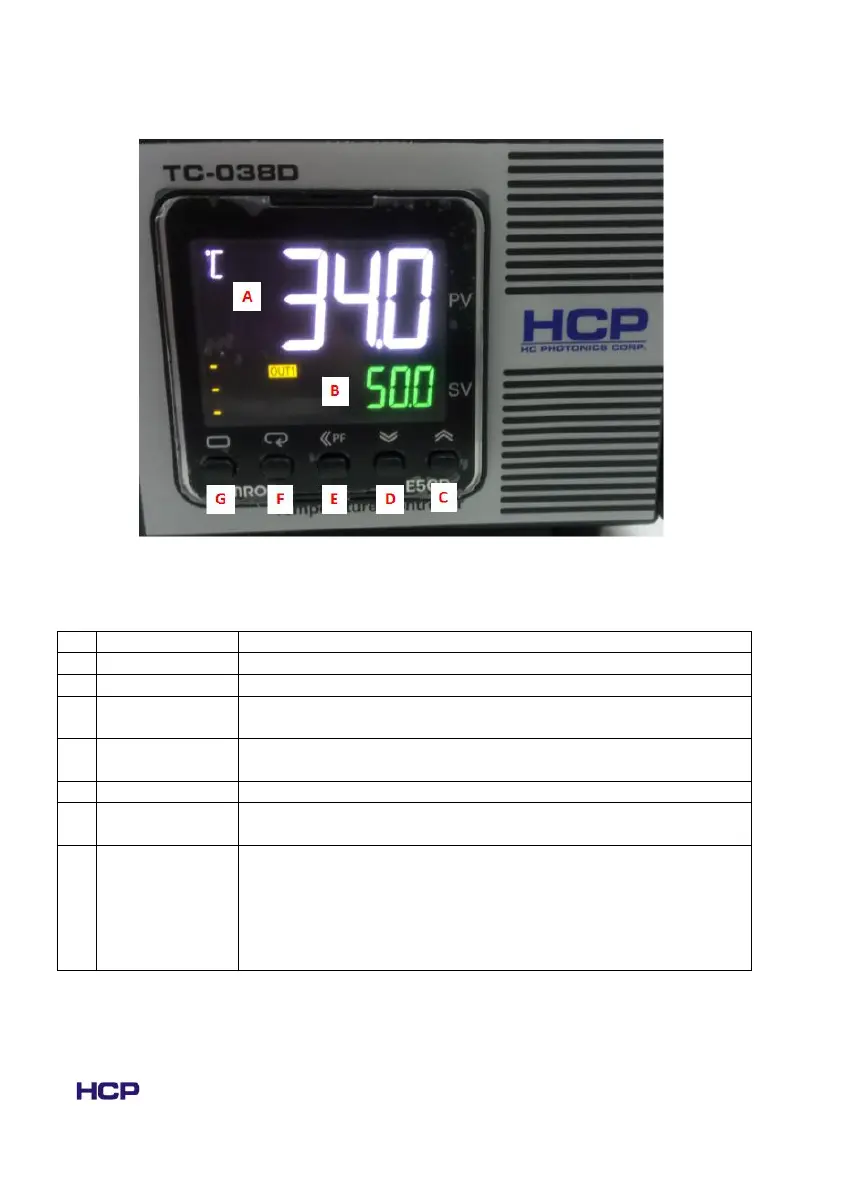 Fig. 1.2.1 The front panel of TC-038D controller, the function of A ~G has been