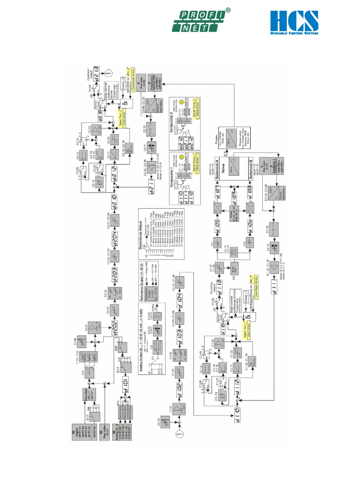 HCS DAC-42A - Operation Mode 06; 1 Valve with 2 Solenoids Spool Position Feedback and Process Value Feedback
