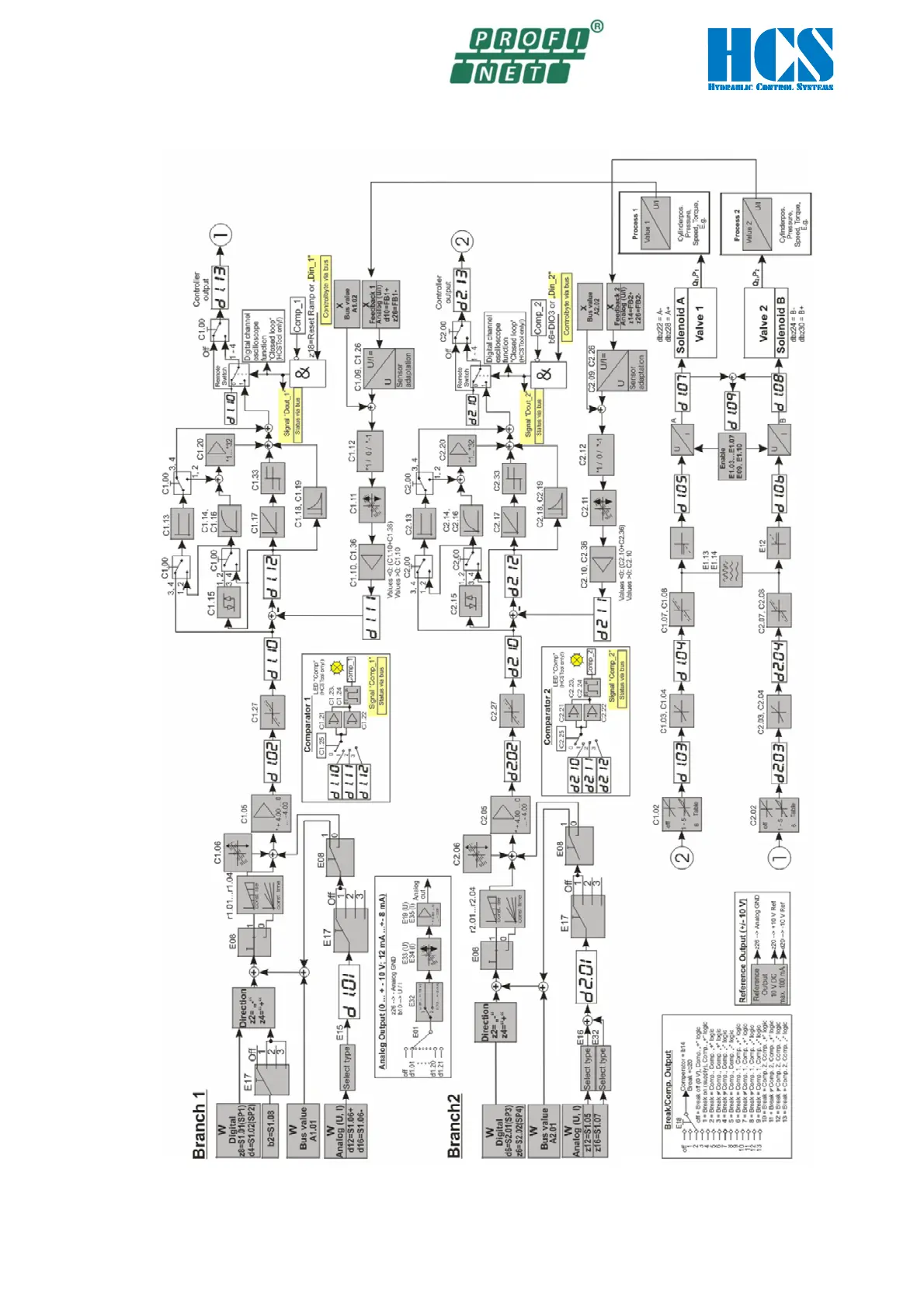 HCS DAC-42A - Operation Mode 08; 2 Valves with 1 Solenoid and Process Value Feedback