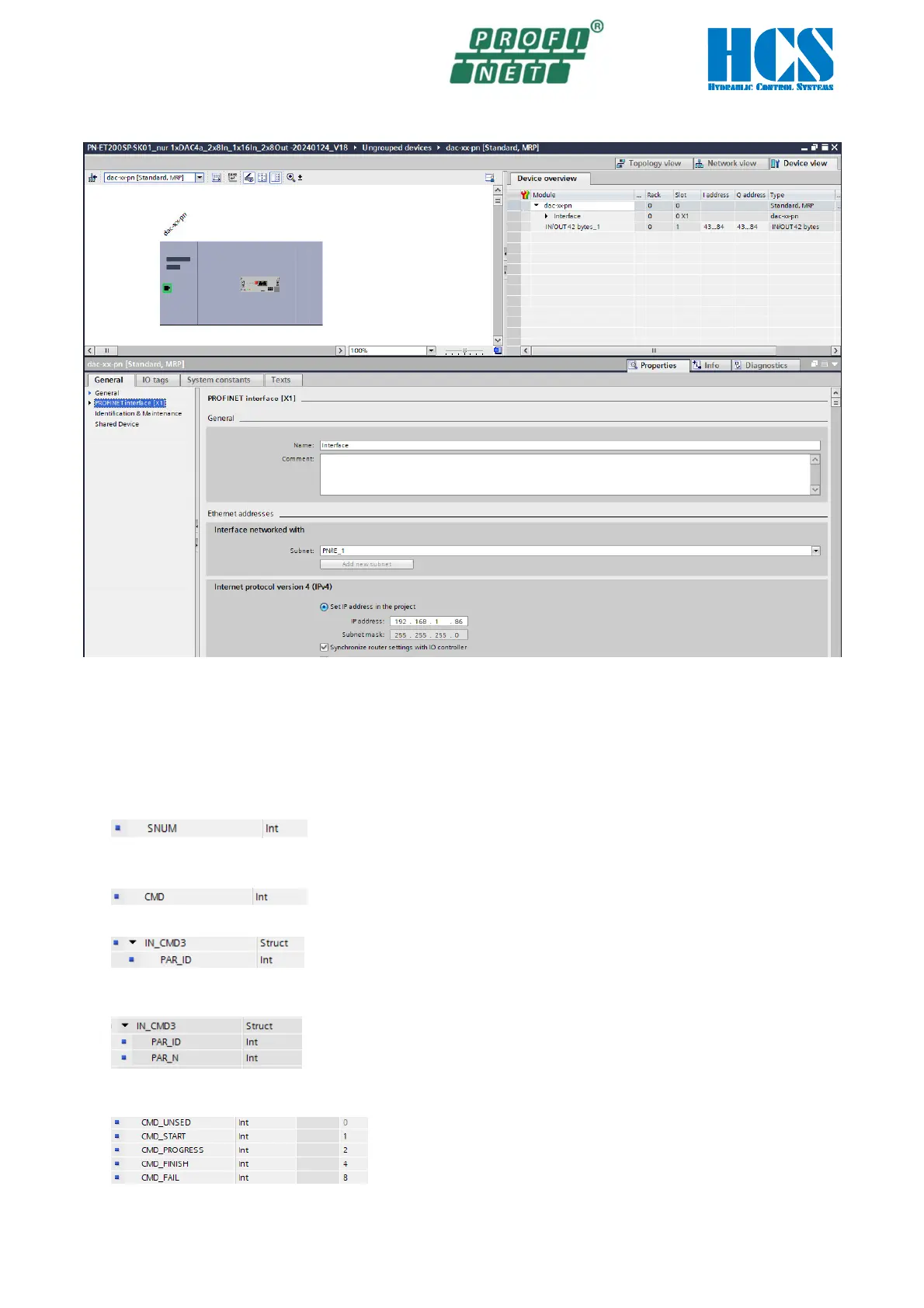 The DAC-4x(A) connected to the Profinet has a fix SNUM (slave number). Together with this number it is possible to read