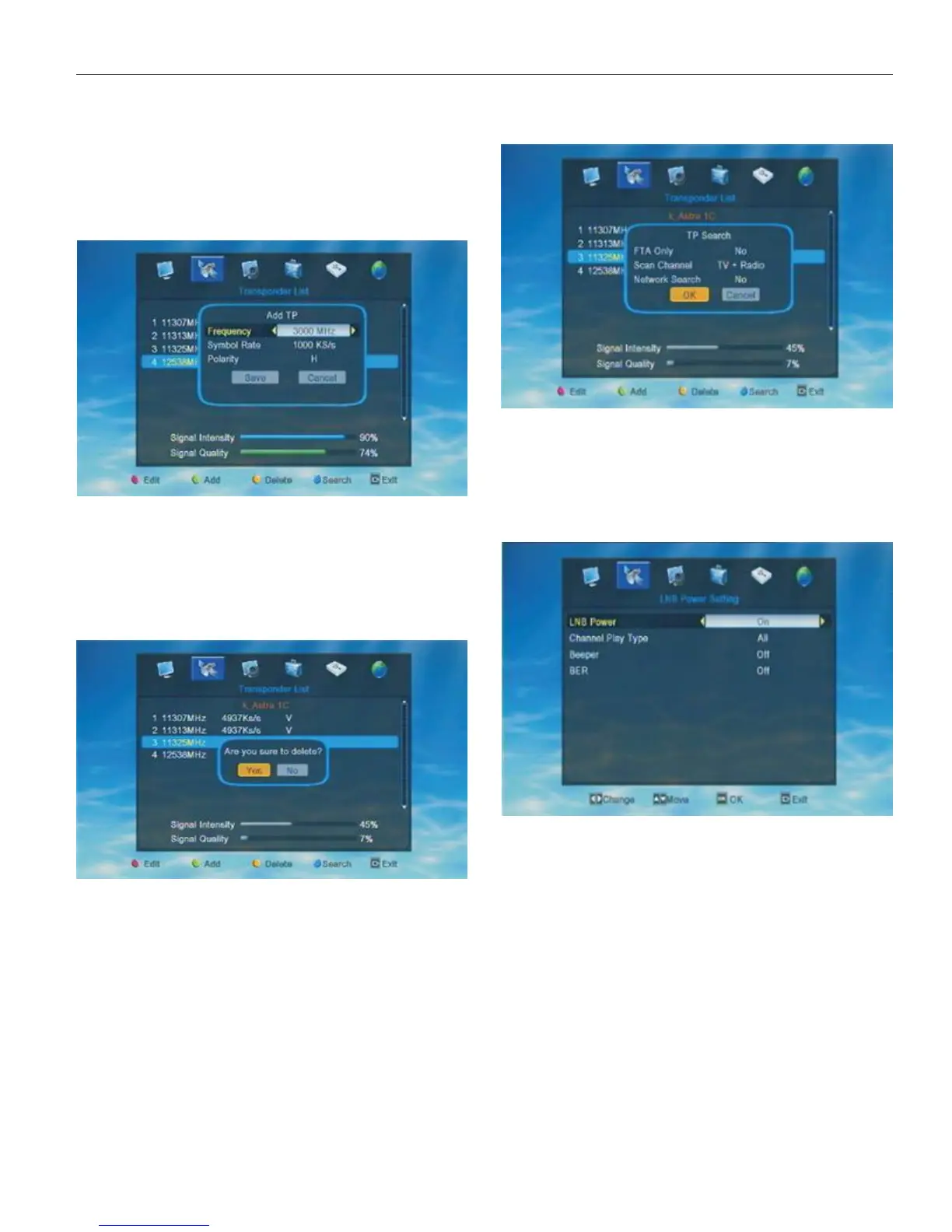 Input the deleted TP’s Frequency, Symblo Rate and Polarity in