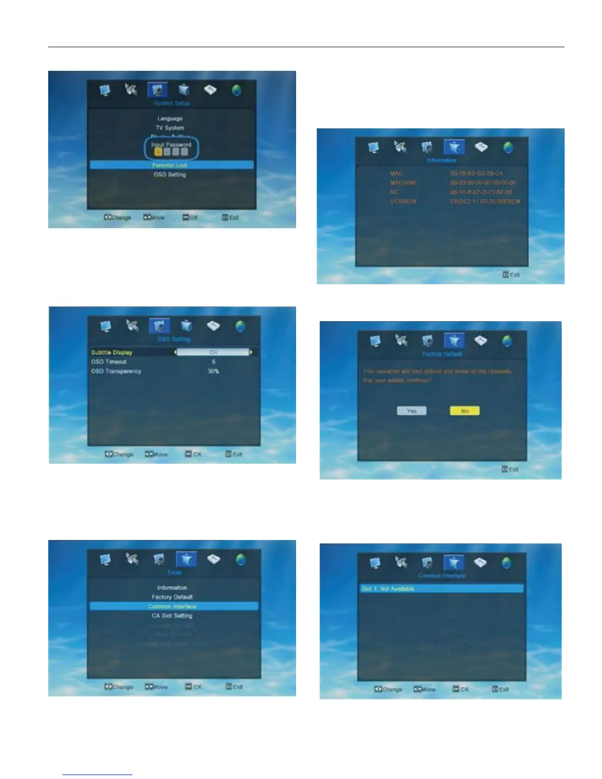 Setting, Common Interface, CA Slot Setting, Upgrade By USB,