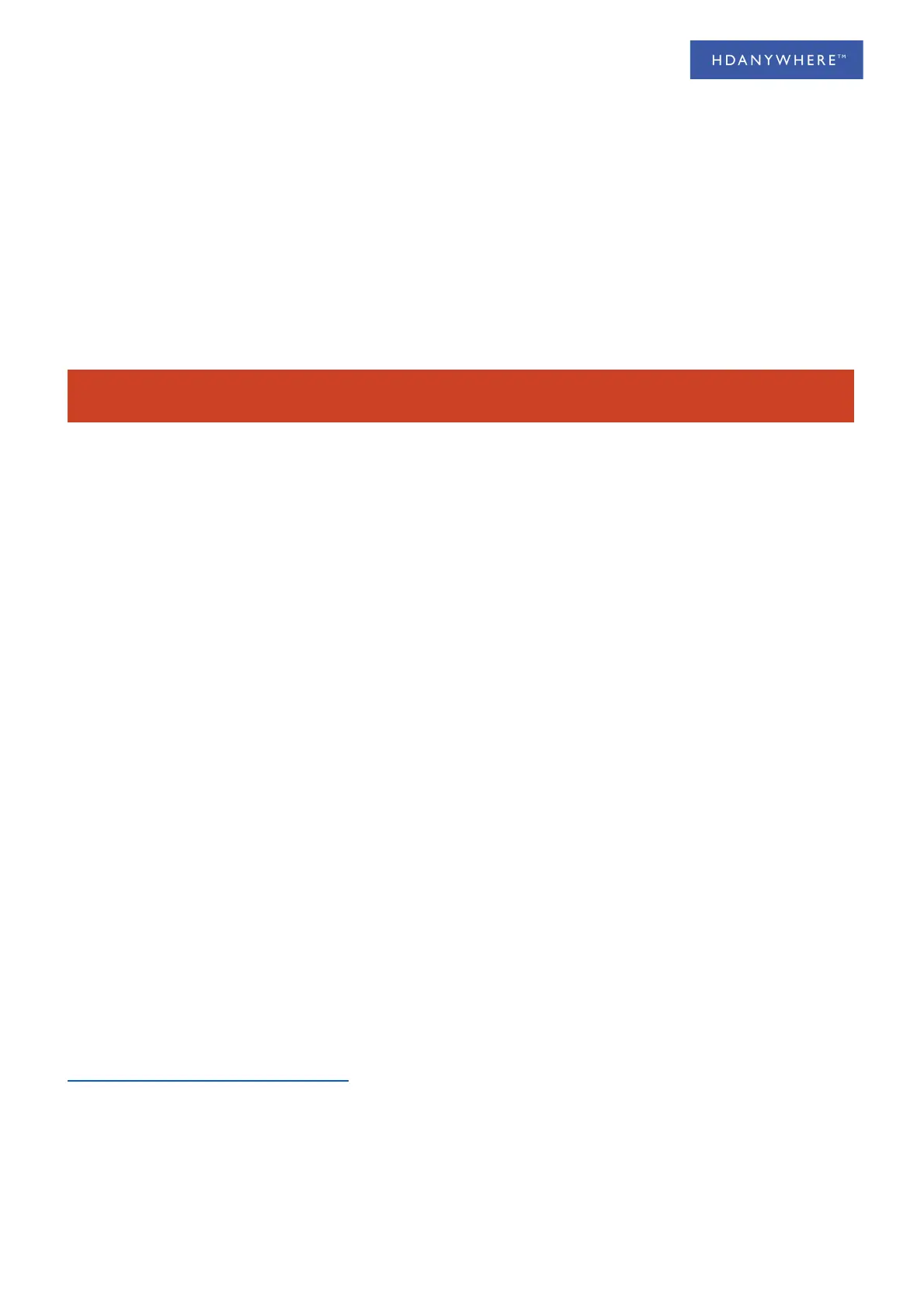 The baseline cable standard for HDanywhere systems is Cat5e. Greater distances can be achieved by using