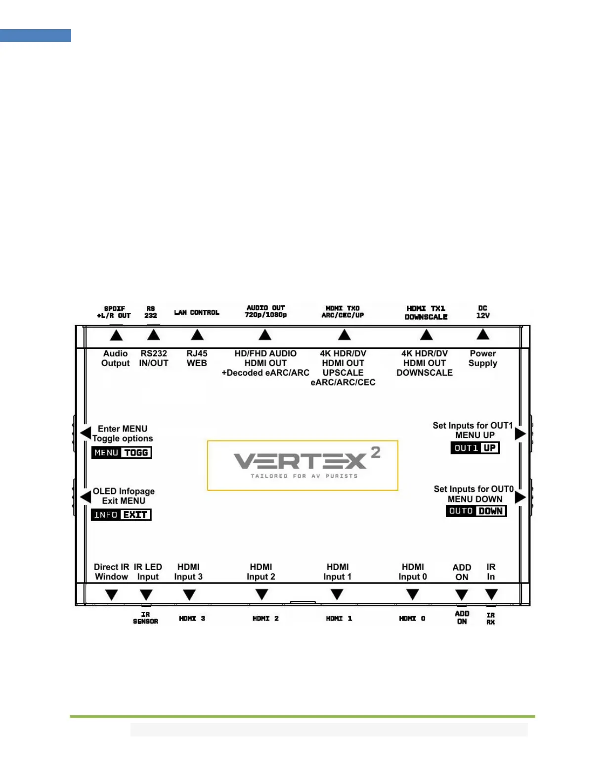 relevant information on OLED/OSD, select between multiple edid banks for each inputs. Inject, replace