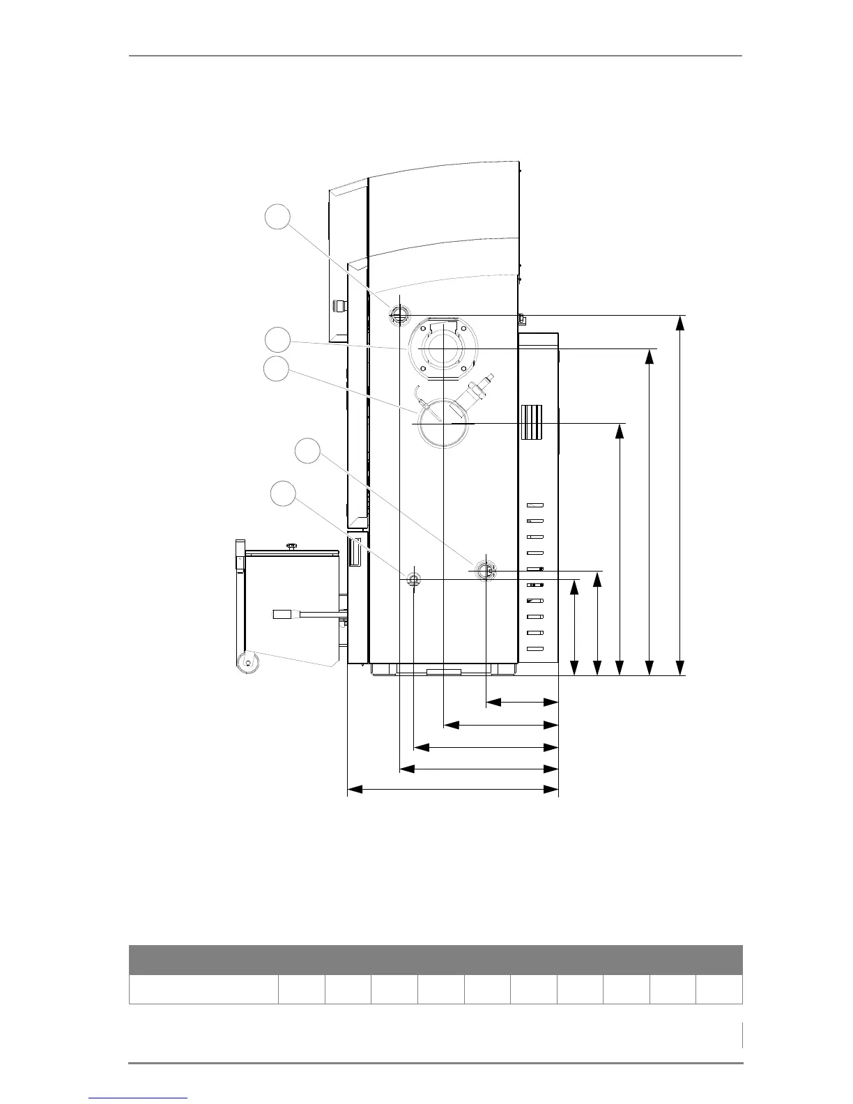 Table 4/3 - Dimensions on flue pipe side, HDG Compact 25/35 (mm)