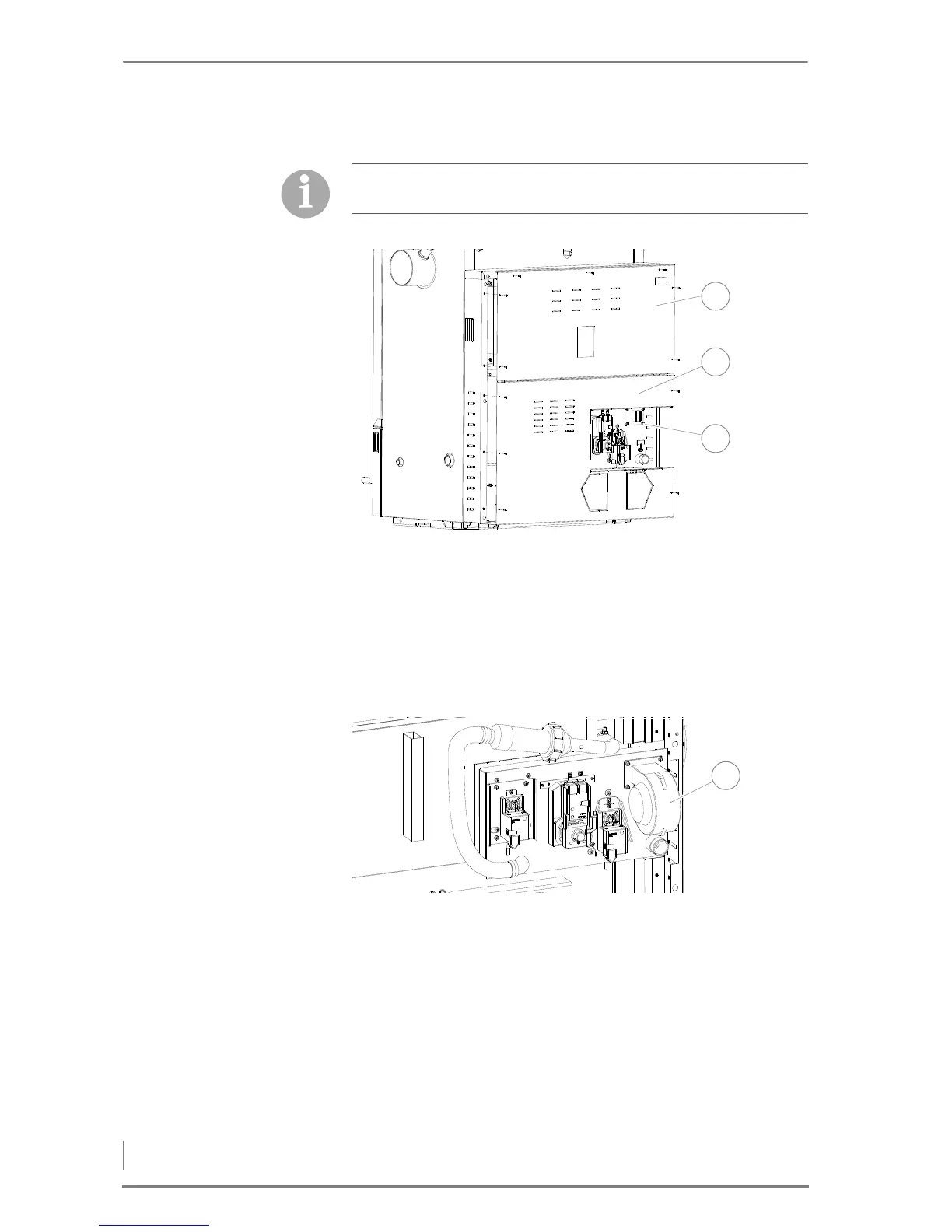 1. Unscrew the cover of the circuit boards (1) with a Phillips-tip