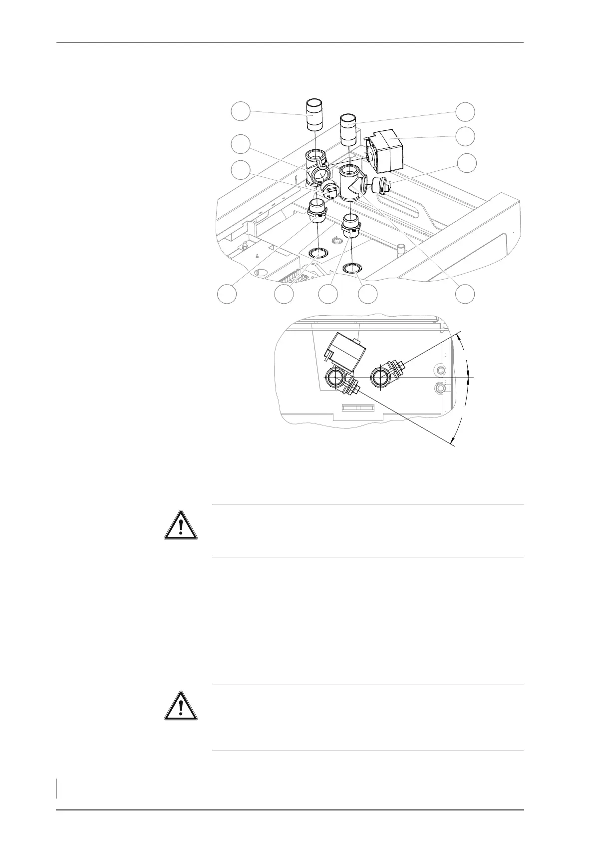 1. Mount the double nipple (4 + 6) on the connection for the flow (7)