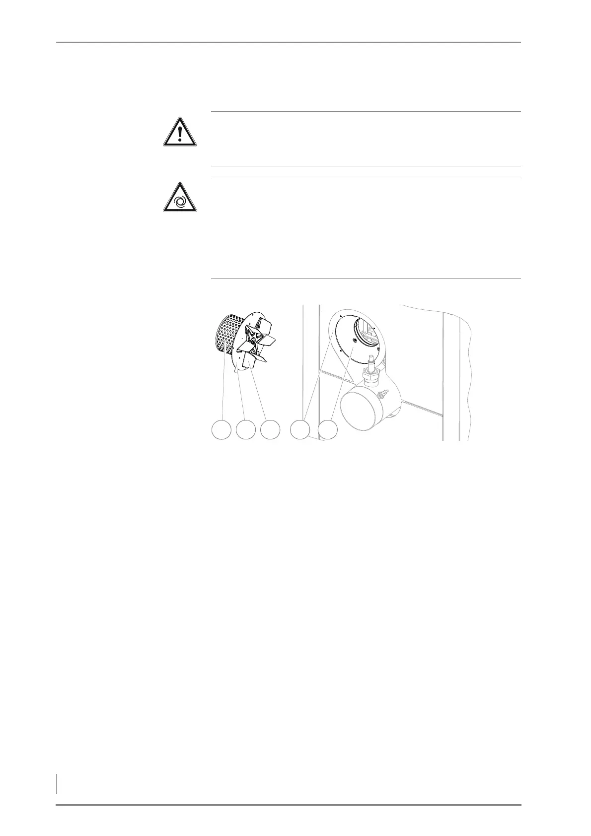 7. Reinstall the flue gas fan in the reverse sequence.