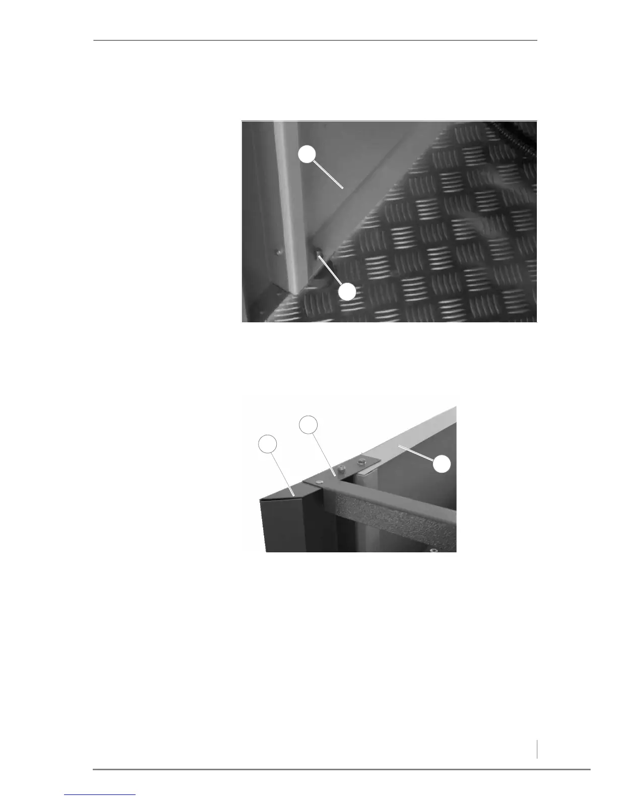 1. Place the door frame (1) on the stud bolt (2) of the plastic foot.