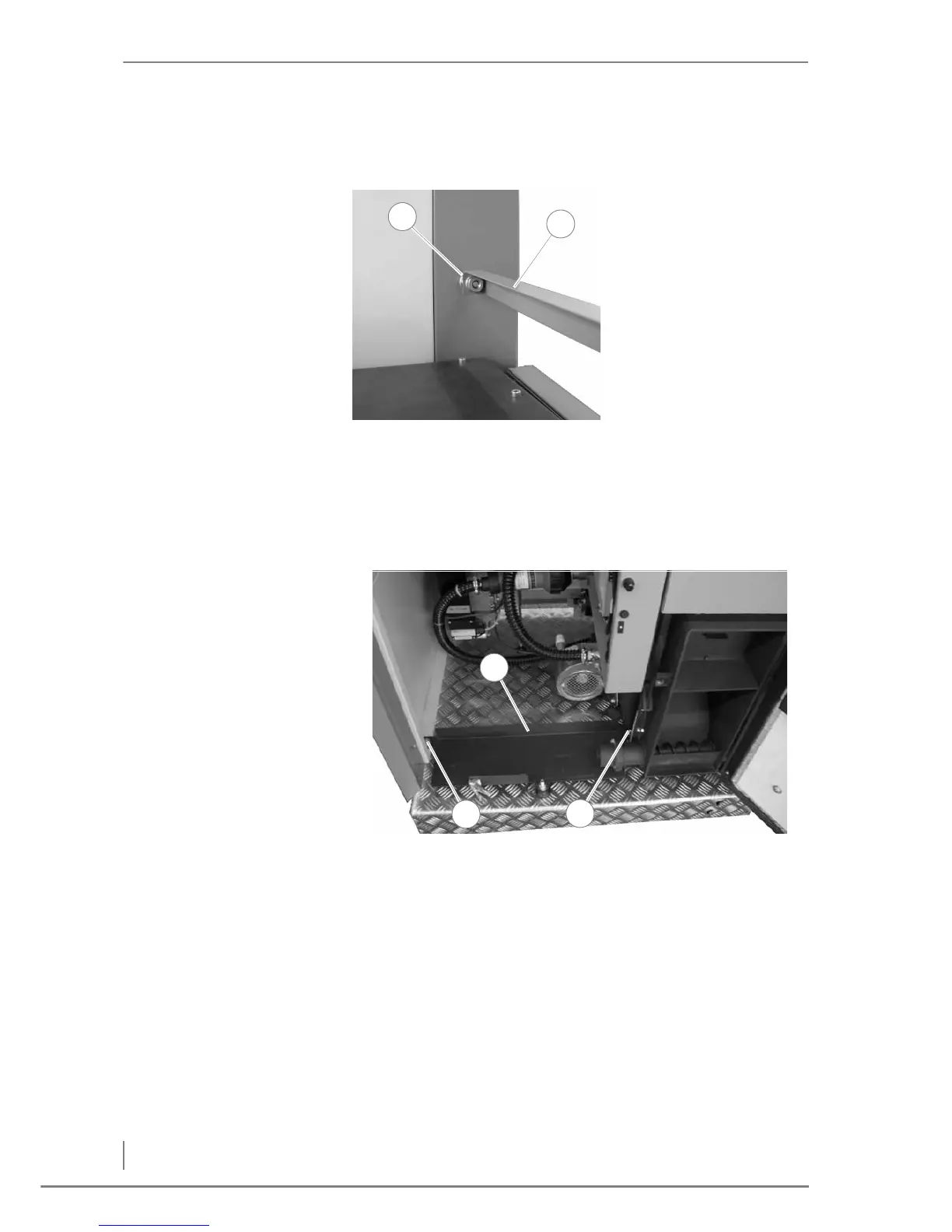 3. Screw the door frame (1) with the attached lid brace (2) onto the
