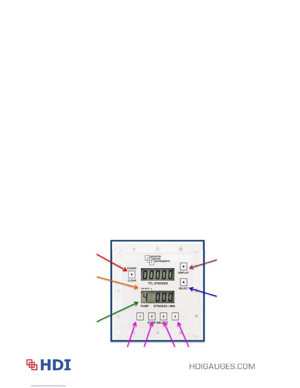 4. Display (D) – toggles the top screen between Total System Strokes and Individual Pump