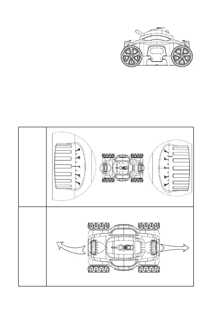 0°.The cleaner moves in a more curved line at a larger angle from 0°- 40°.