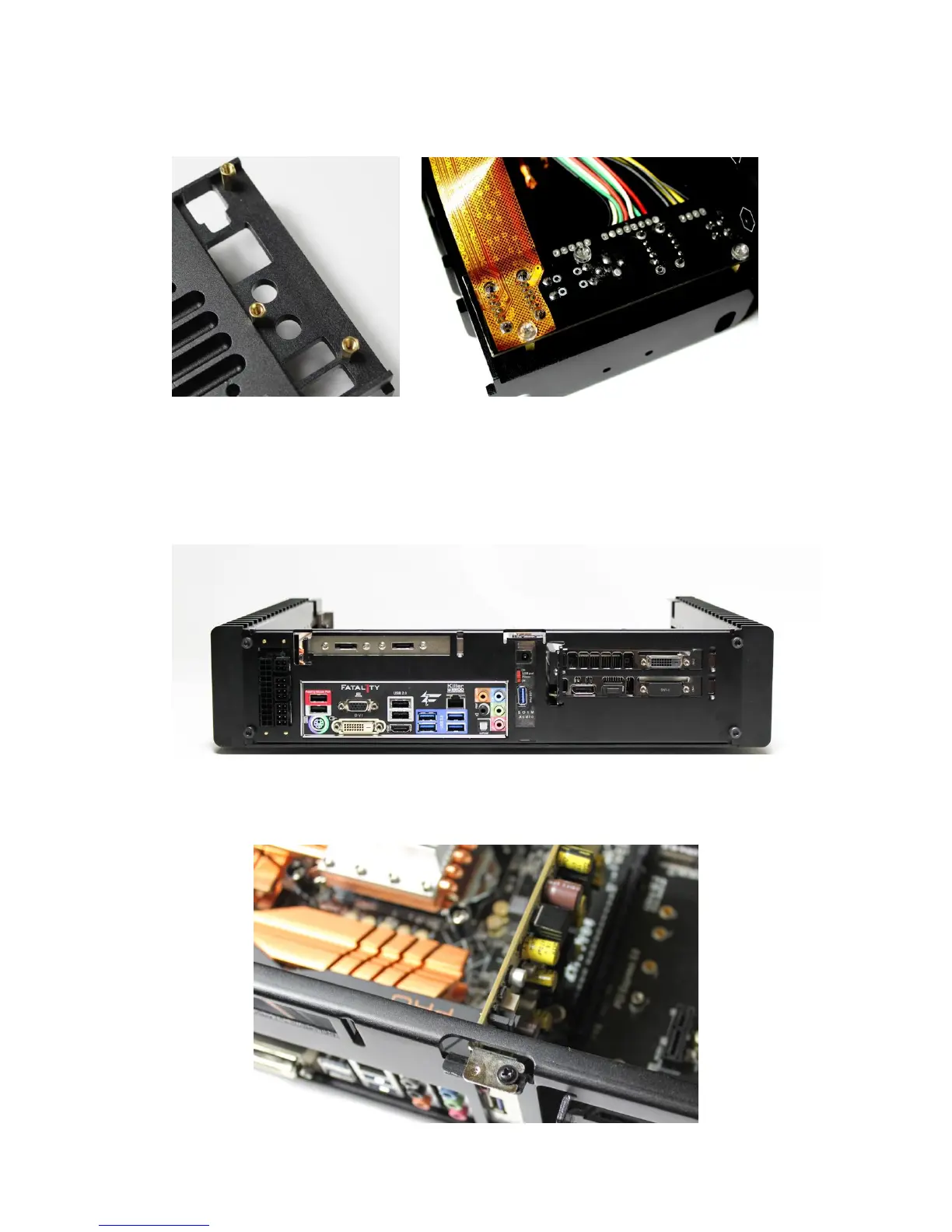 Install three 10mm copper posts E to the right side panel. Install the side I/O