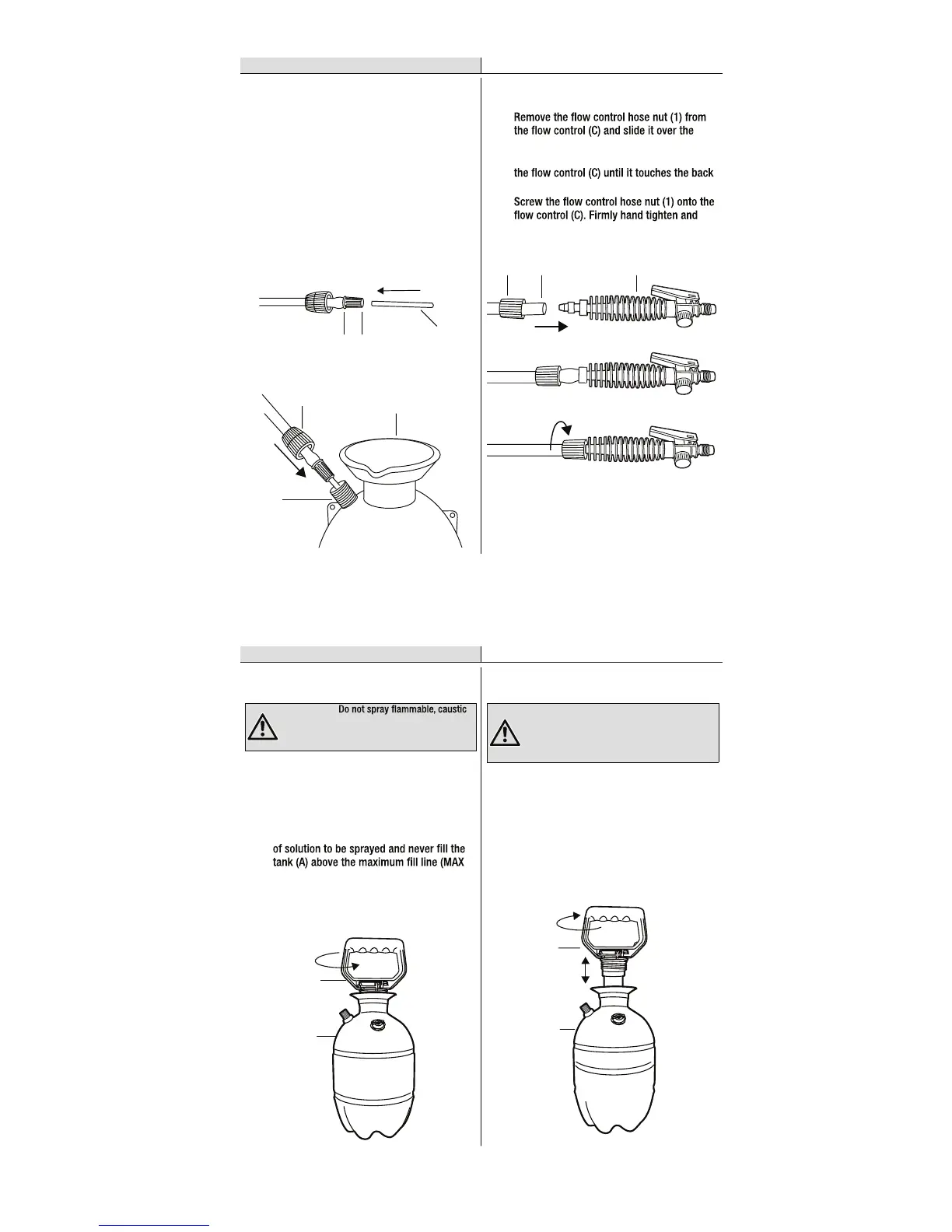 tank (A) by turning clockwise. Firmly hand
