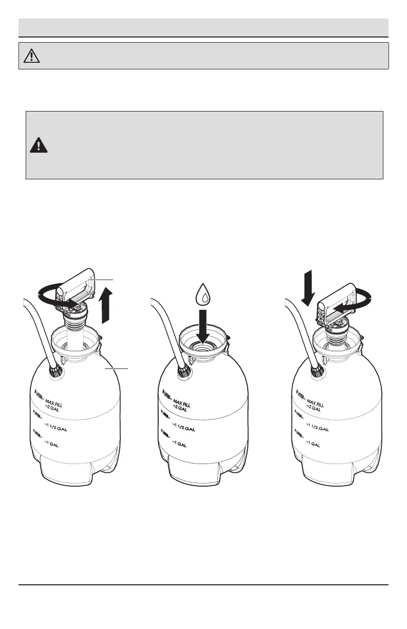 □ Nunca use productos químicos inamables o combustibles en este pulverizador. Rociar productos químicos inamables o combus-