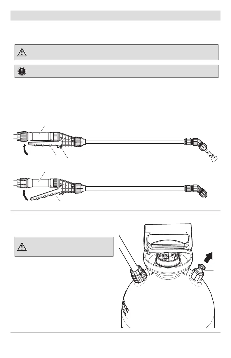 Asegúrese de que la palanca de cierre está libre antes de comenzar a presurizar el pulverizador. El pulverizador rociará cuando esté
