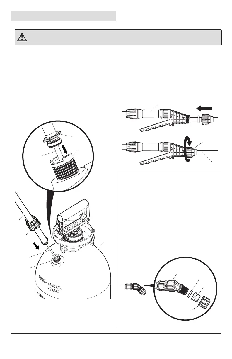hose is free from damage, prior to using the sprayer with chemicals.