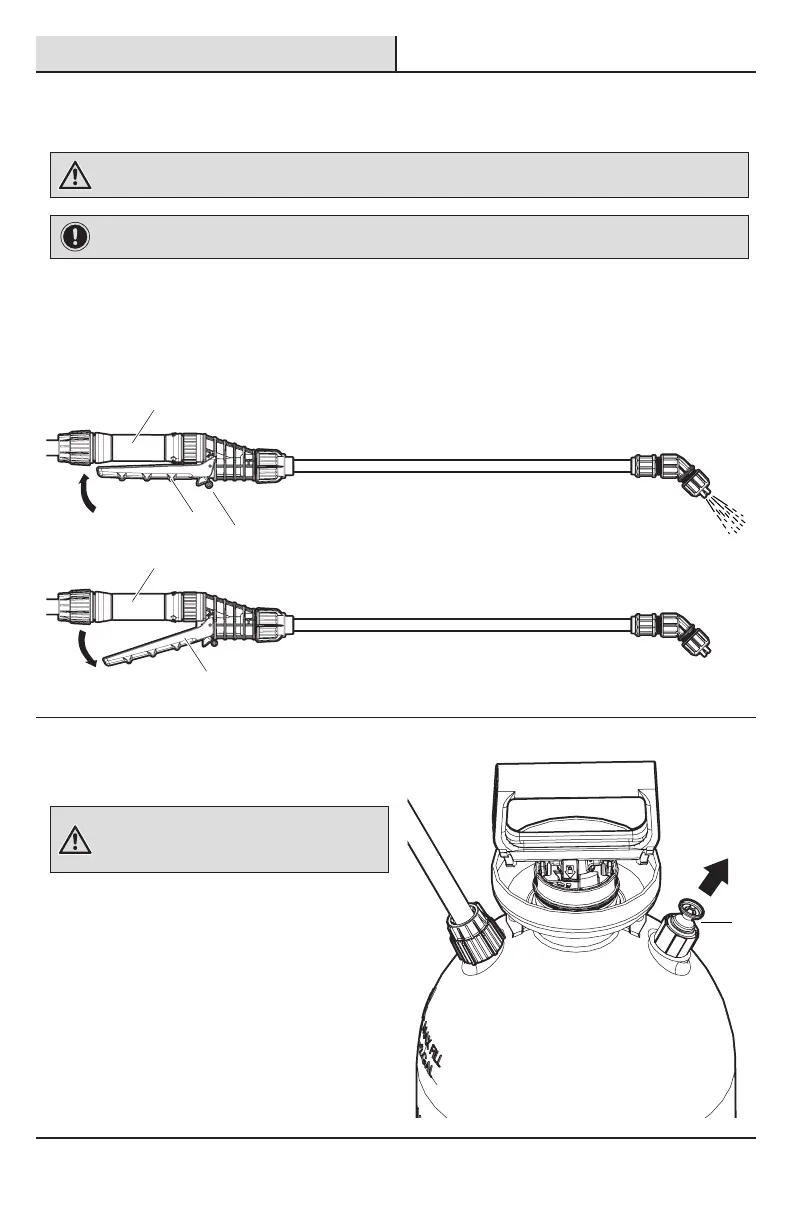 lever is released before starting to pressurize the sprayer. The sprayer will spray when pressurizing if the shut-off lever is depressed.