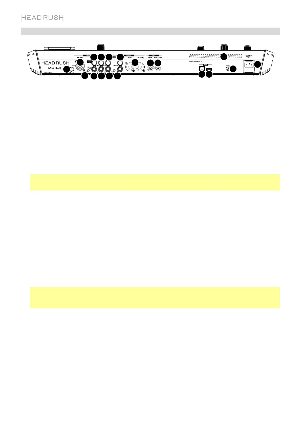 2. Netzschalter: Drücken Sie diese Taste, um das HeadRush Prime einzuschalten.