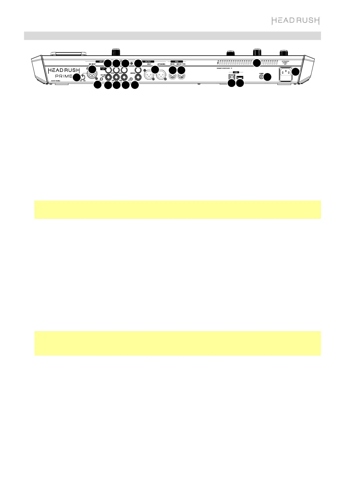 3. Ventilación: Asegúrese de que esta ventilación no se encuentre obstruida mientras utiliza la HeadRush Prime.