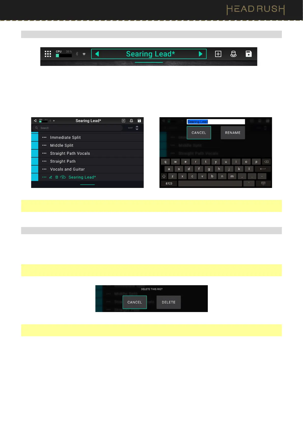 rigs on your HeadRush Core. Then, tap the button next to the name of the rig you would like to rename, and