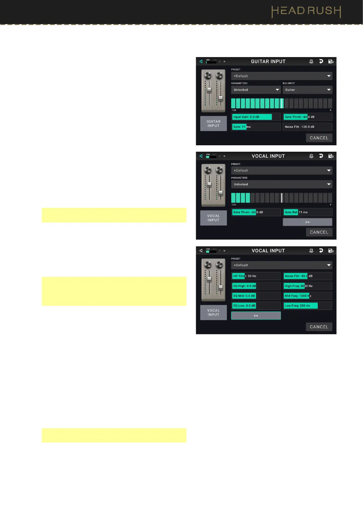 HP Filter, Noise Filter, EQ (Vocal Only): There are