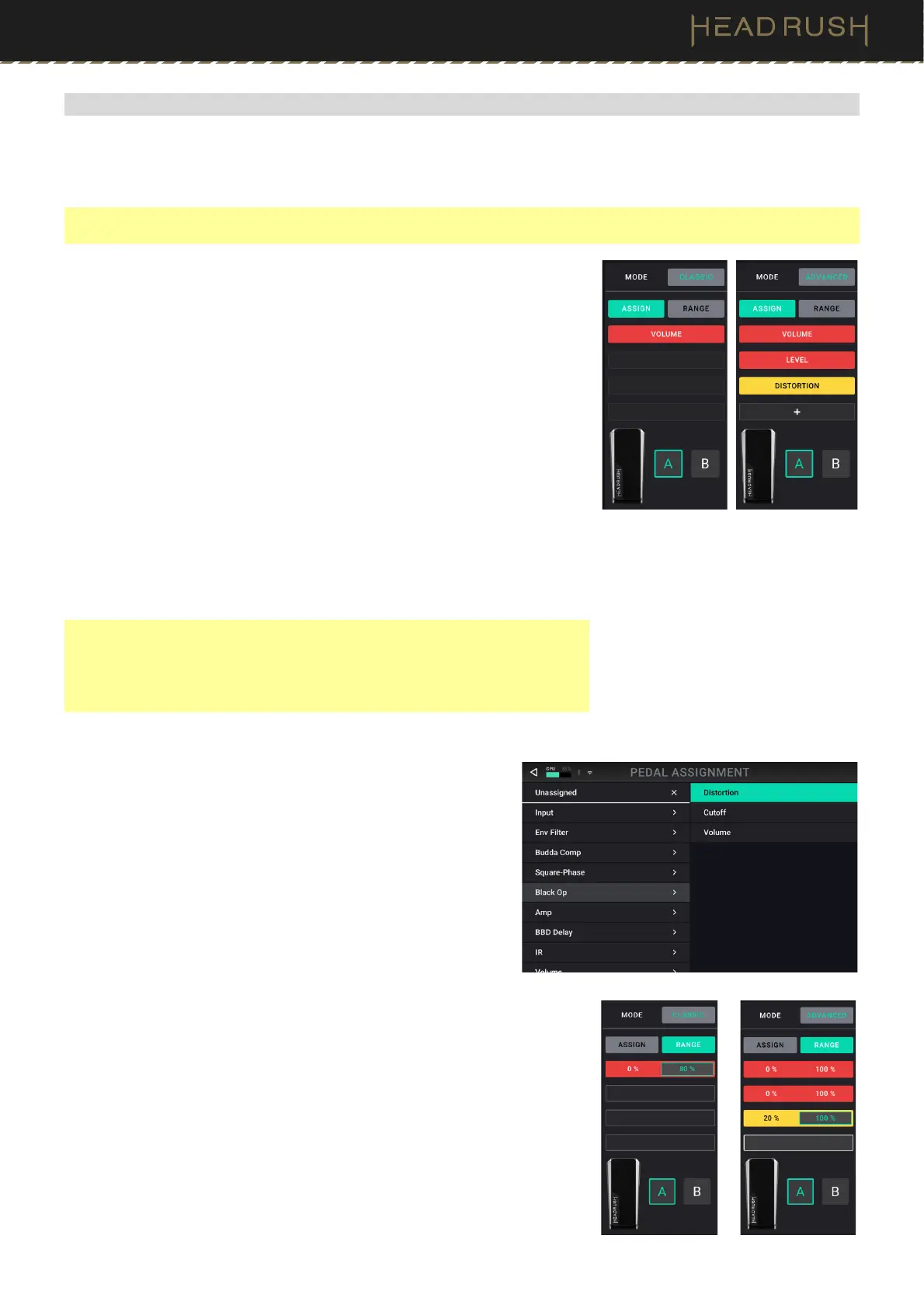 pedal’s parameter. For instance, if you assign a wah pedal to