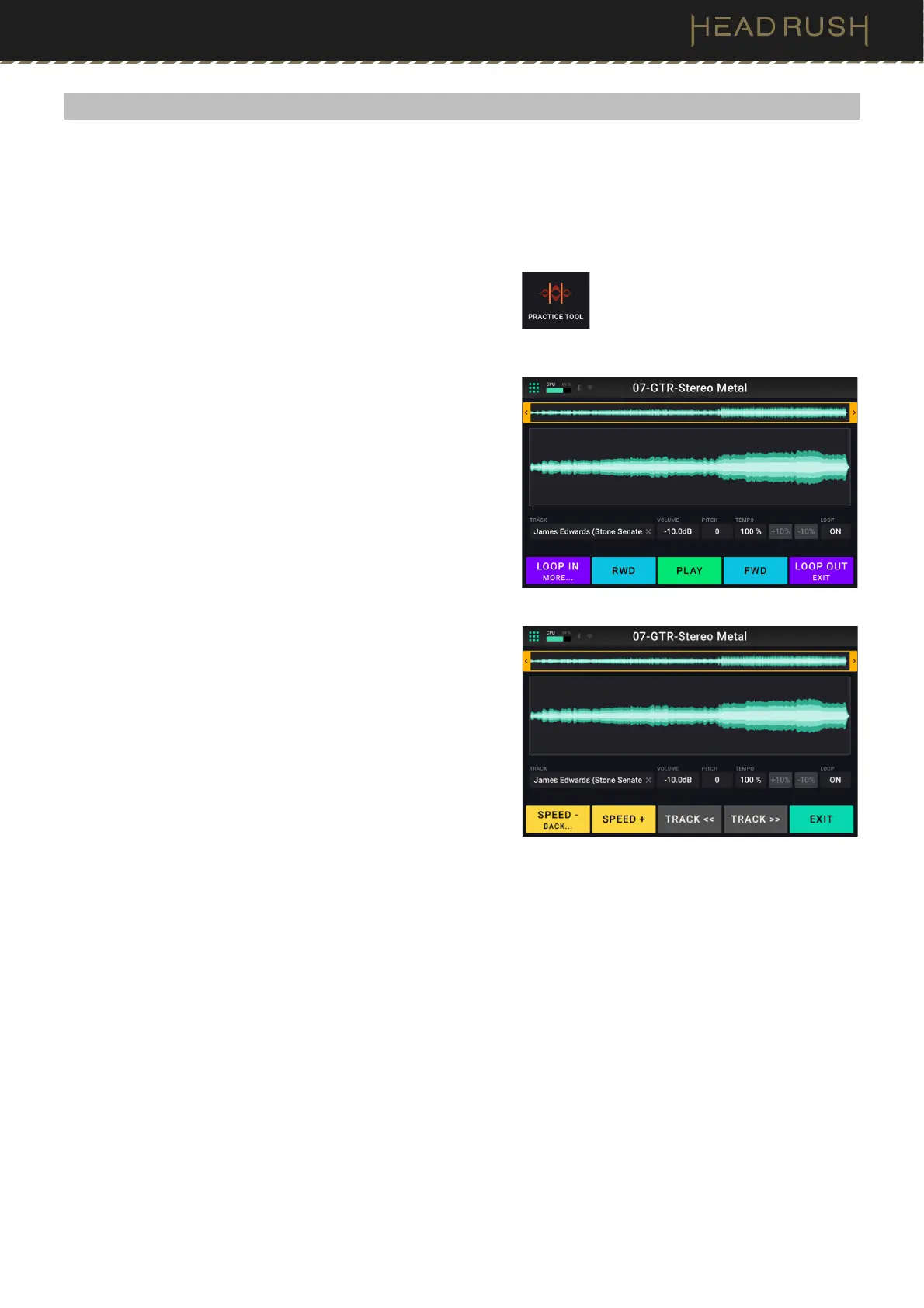 HeadRush Core includes a convenient built-in Practice Tool that you can use to play along with songs from your