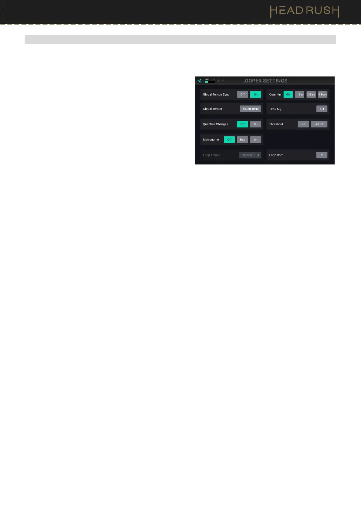 the Looper to sync to HeadRush Core’s Global Tempo.