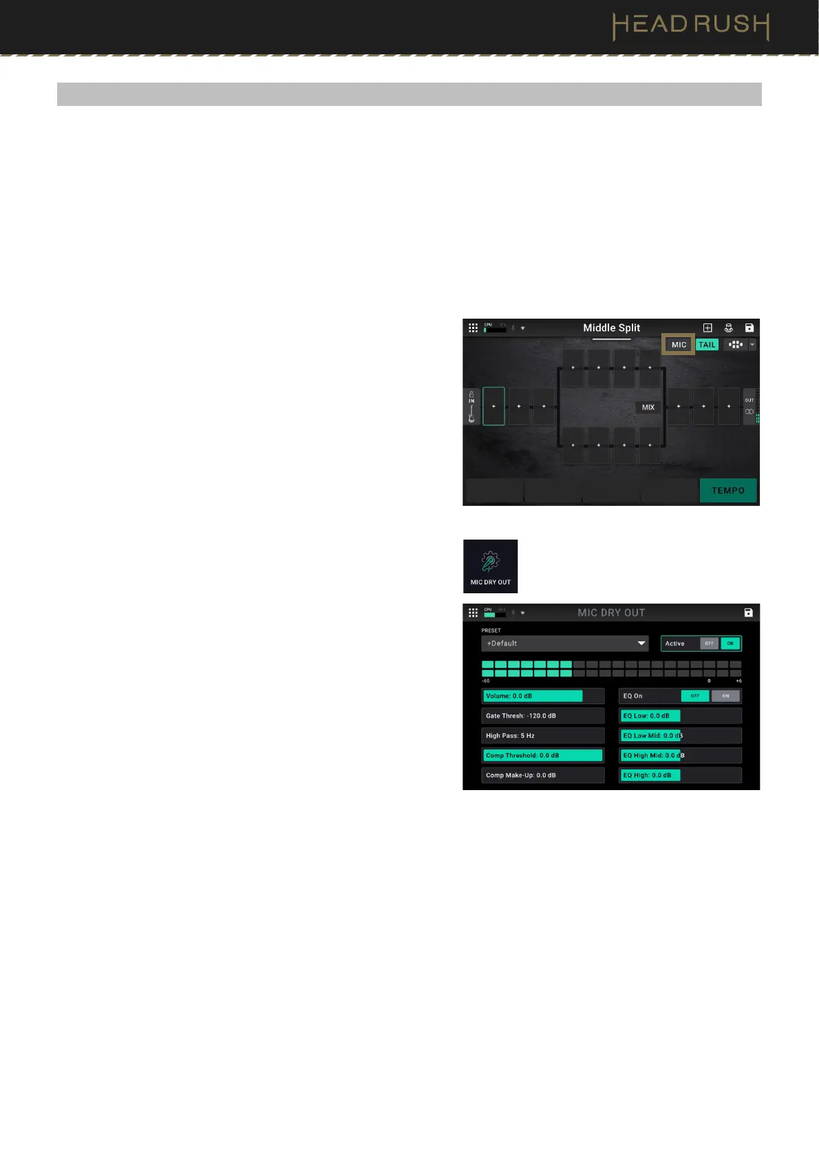 screen still enables you to enhance the Mic Dry Out signal with