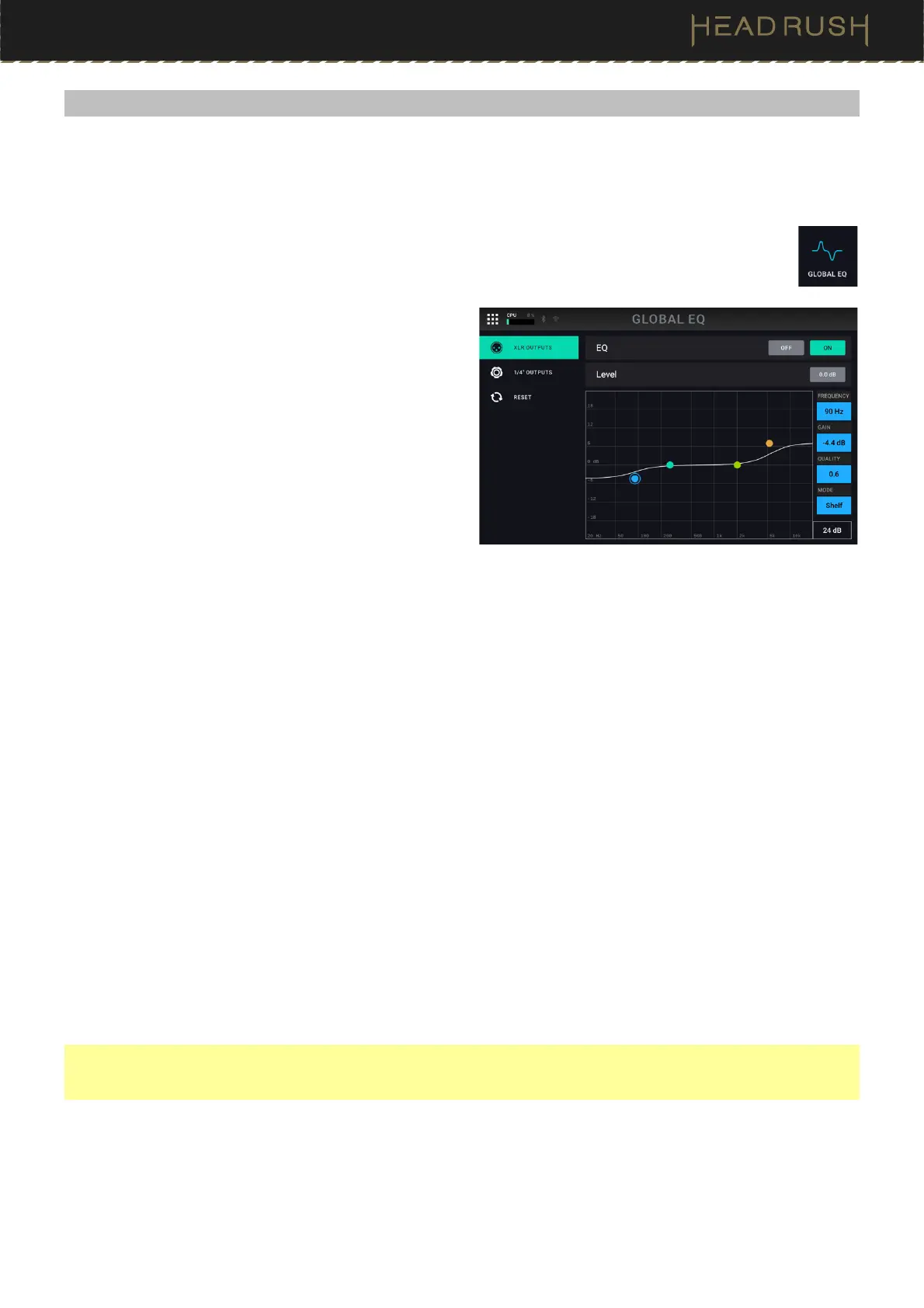 The Global EQ screen lets you quickly apply additional equalization to all your rigs without permanently saving them.