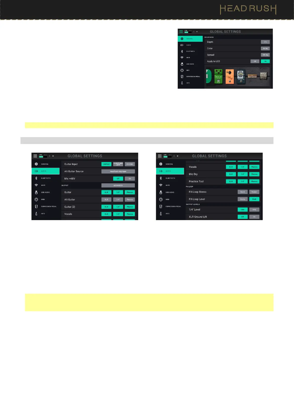 to send the signal to HeadRush Core’s XLR outputs, 1/4” to send the signal to the 1/4” outputs, and Phones