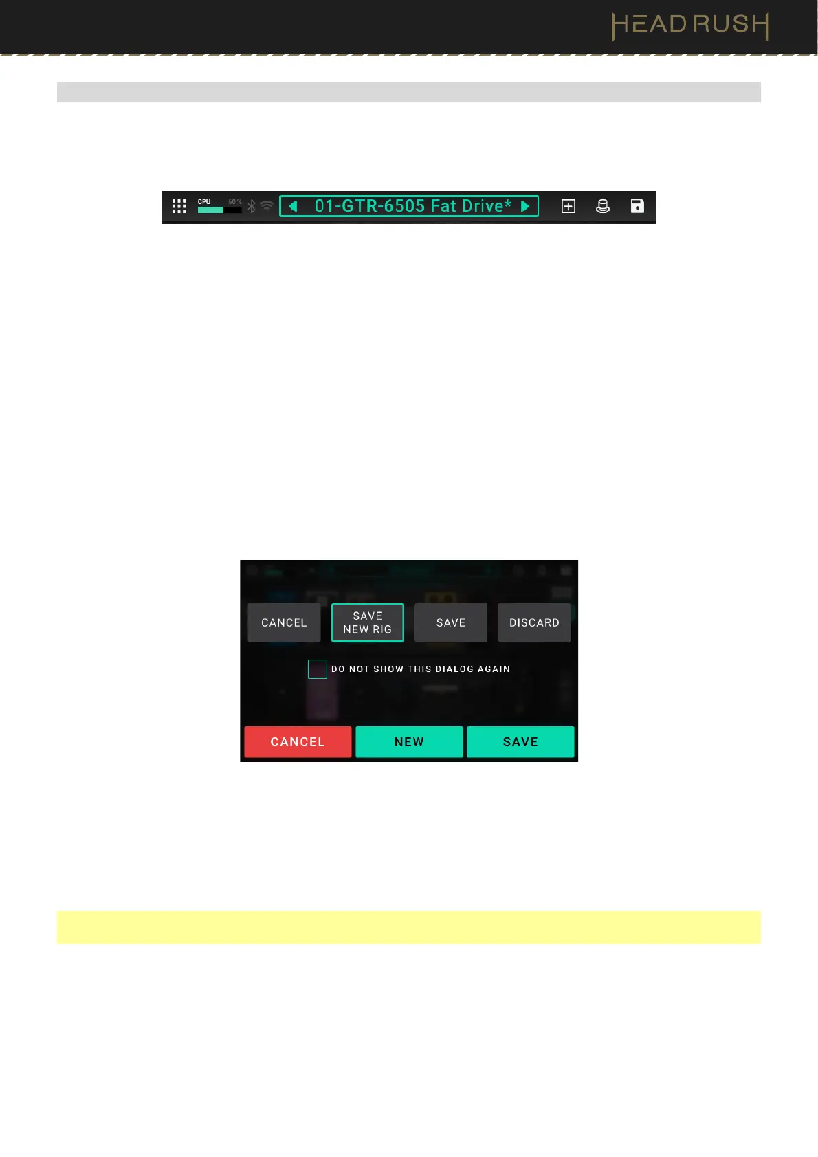 • Save New Rig: This option lets you save the current rig as a new rig. In the screen that appears, use the