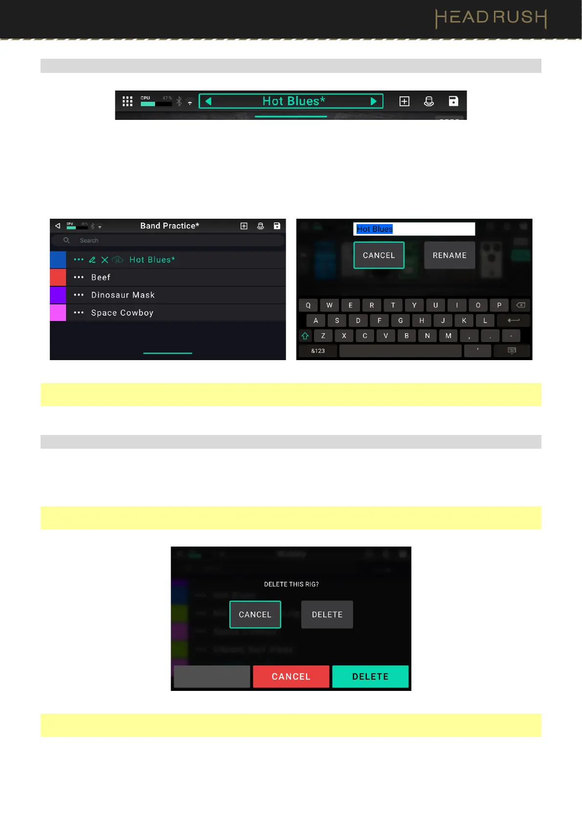 Note: Rigs can only be deleted when viewing the All Rigs setlist. If you are in another setlist, the delete option will