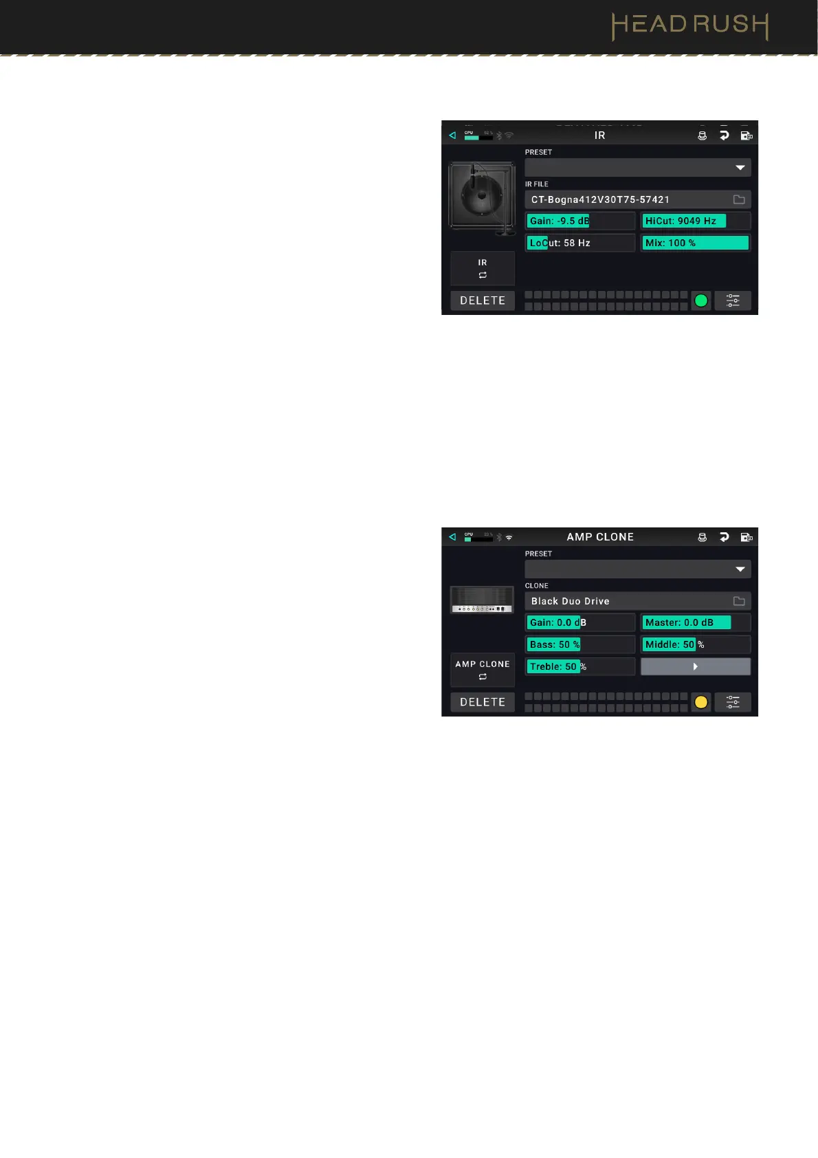 IR Settings: After the IR has been selected, you can further dial in the IR’s sound by adjusting the Gain, Hi-